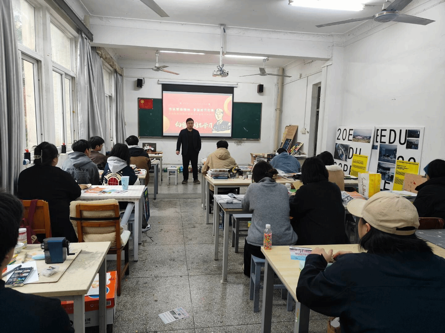 班会上,班主任通过雷锋日记摘录生动阐释了雷锋精神“奉献、友爱、互助、进步”的核心要义,强调新时代学雷锋,既要传承他“一滴水融入大海”的集体主义精神,更要结合专业特长创新服务形式。希望同学们把学雷锋活动融入日常、化作经常,让青春在奉献中闪光。号召同学们将个人成长融入国家发展。最后,班主任介绍了学校关于雷锋志愿服务先锋节活动安排,鼓励同学们为身边的同学、老师、扫地阿姨、门卫大叔、服务人员做一件力所能及的小事,以实际行动传承和弘扬新时代雷锋精神。
