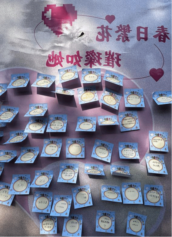 在精心布置的主题展板前,参与活动的师生络绎不绝,他们认真地将心底温馨的话语写在一张张便签上,五颜六色的便签承载着大大小小的心愿与祝福。展板上,每一笔都饱含着真诚,每一句都传递着力量,大家于无声的文字中收获着来自他人的温暖与善意。