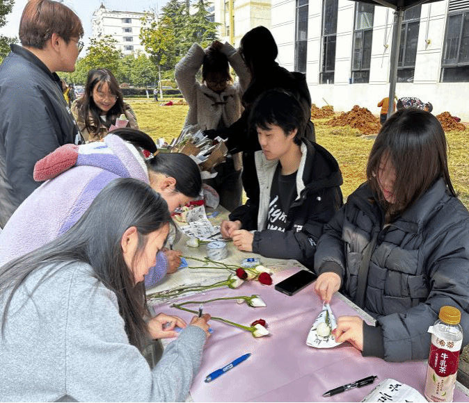 院团委学生会于3月7日,在南湖校区食堂入口处举办了以“春日繁花,璀璨如她”为主题的庆祝活动。