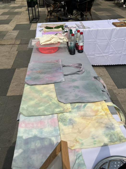 其中,本次活动的文创产品全部都是由本学院学生亲手创作,暨利用自己的巧思和技艺,将冰染技艺与现代设计完美结合,打造出既有传统韵味又不失现代时尚的独特文创。活动中,这些产品受到市民的喜爱,活动的顺利开展,也为五环天地的文化创意产业注入了新的活力。